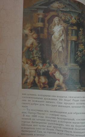 Книга проиллюстрирована репродукциями наиболее известных работ Рубенса. Бумага -плотный офсет - тонирована в бежевый цвет, стилизована под растрескавшуюся грунтовку.