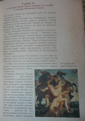 Книга замечательно оформлена: на каждой странице присутствует иллюстрация, есть развороты без текста, полностью заполненные репродукциями картин.