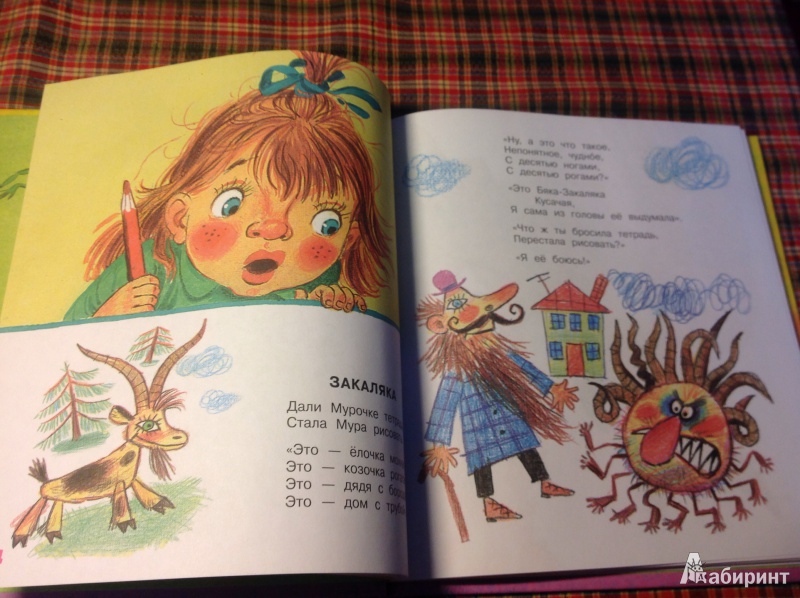 Купила книгу для дочкиной библиотеки. Здесь собраны наиболее известные стихи классика, чудаковатые и смешные, стихи-небылицы и загадки. Книжка с яркими цветными иллюстрациями наверняка заинтересует детей. Единственное, что отпугивает наверное многих покупателей это обложка со страшной Бякой-Закалякой, которая присутствует и на страницах книги, в стихотворении про нее. Но книгу назвали так и на обложку была вынесена именно главная героиня этого стихотворения.