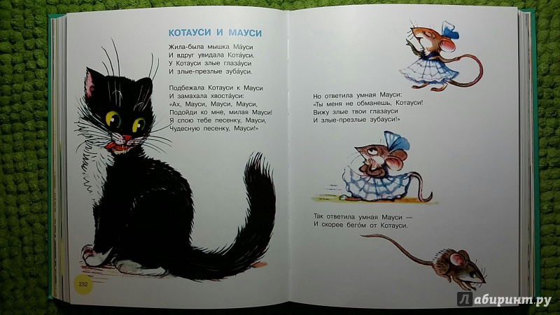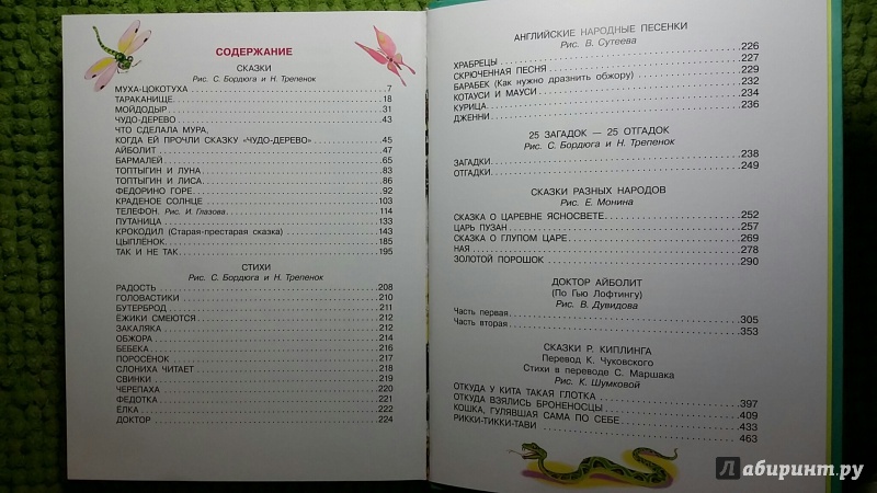 Замечательная книжка! Мелованная бумага,яркие большие иллюстрации. В книгу вошли произведения Чуковского,как автора, а также его перевод сказок Киплинга (Рикки- тикки -тави и др).покупала сыну1.5 года, очень нравится книжка и мне и ребенку. Единственный минус,который я нашла в этой книге-почему то тонкий переплет, картон не очень плотный,чуть толще чем у мягкого переплёта.но надеюсь,выдержит частое чтение,потому что книга претендует на роль самой любимой.книга уникальна по составу. Куплю вторую на подарок.
