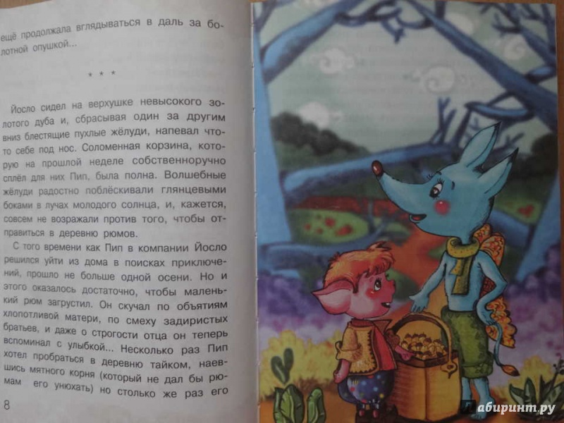Книга формата А5, яркие картинки в большом количестве. Интересные имена и расы у главных героев (Мельфа, Рока, Пип, Йофа и др, рюмы, норики, гигантские червяки). Крупный шрифт. Читается достаточно легко. Книга о дружбе, взаимовыручке, приключениях, чудесах, немного об отношениях с родными.