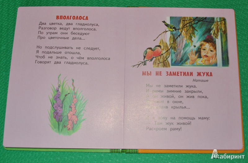 Стихотворения расположены в порядке усложнения. Если первые стихотворения можно читать уже малышу до года, то последние как мне кажется надо читать детишкам от двух лет. Качество печати хорошее.