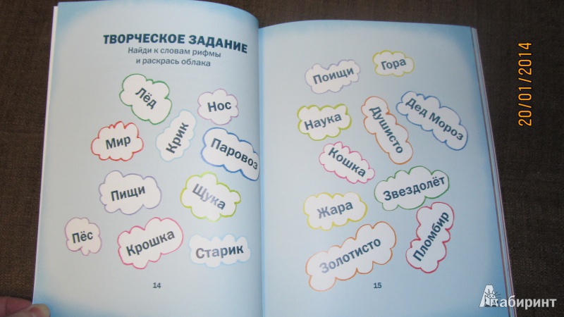 Забавная детская зимняя книжка. Легко читаемые познавательные сказки, увлекательные творческие задания: подобрать к словам рифмы, аппликация "Снеговик", найти одинаковые снежинки, раскрась картинку и др. В сказке "Луна заболела" есть даже лунный календарь. О покупке нисколько не пожалела, правда читать будем на следующий год - задания для 2-х лет трудноваты...