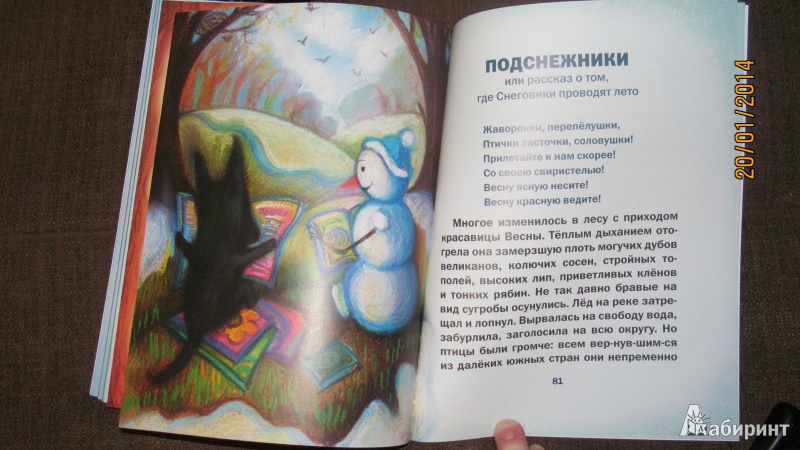 Книга напечатана на плотной бумаге, обложка мягкая, много симпатичных иллюстраций. По содержанию - добрая история о дружбе волчонка и снеговика. Изюминка книги в том, что в ней достаточно много "творческих заданий", разнообразных и интересных, от "раскрась картинку" до предложения заморозить воду а потом растопить лед. А еще длинные и сложные слова написаны по слогам, то есть книга адаптирована для самостоятельного чтения начинающими.