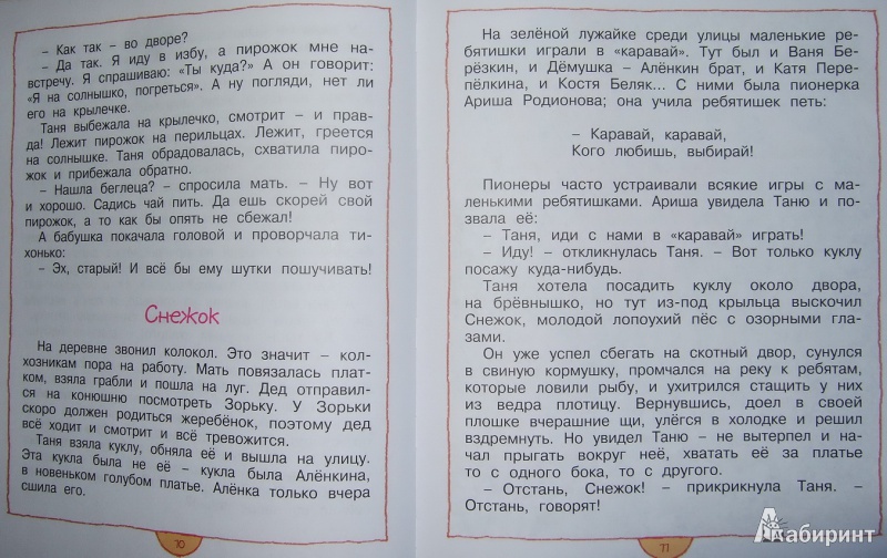 Книга с твердой обложкой, крупный шрифт, качественные рисунки. Короткие рассказы про девочку Таню, которая живет в русской деревни с родителями, бабушкой и дедушкой.