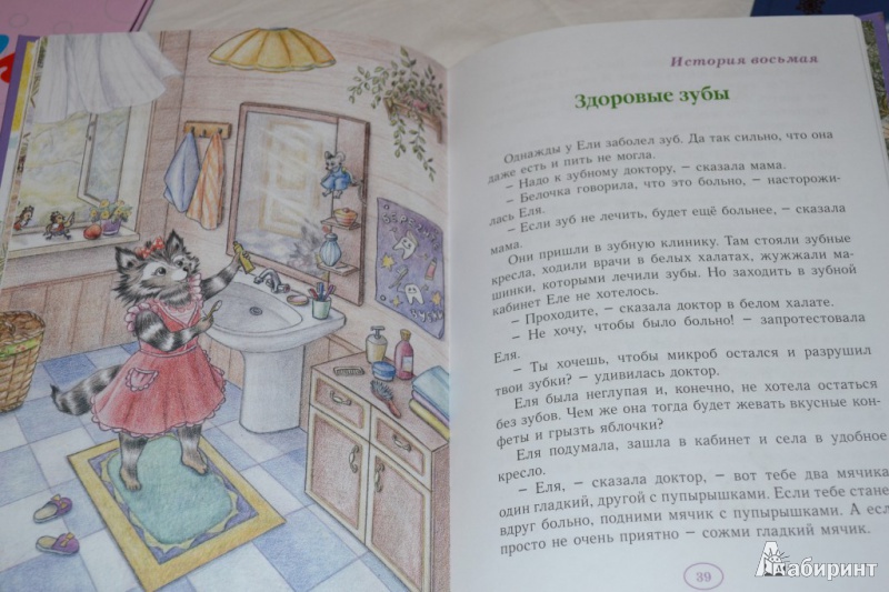 Истории помогают хвалить и поддерживать друг друга, учат ответственности - есть истории про то, как важно беречь сон, как плохо брать чужое, очень понравилась история, как енотики гостили у тёти, родителям полезно это почитать. А также сказки про порядок в комнате, про силу улыбки, даже про зубную клинику - совсем не страшно и важно следить за зубами, если помните, в предыдущей книге тоже замечательная история про больницу и врачей. Трогательно написано про то, как играть вместе, к этой истории две иллюстрации просто чудесные, картинки этого художника все-таки лучшие! Добрые и трогательные - когда Еля грустит, даже часики на стене с опущенными стрелками.