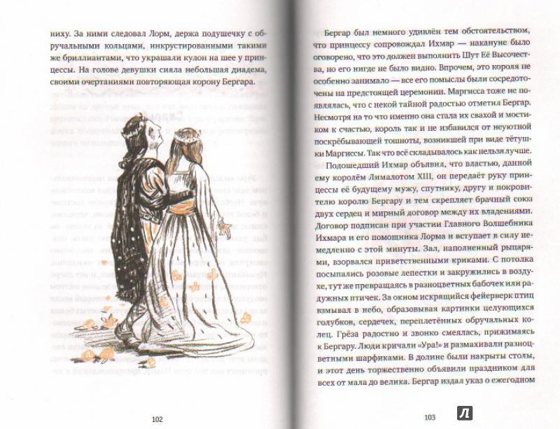 Сама книжечка небольшая по объему, но автору удалось создать захватывающую историю с приключениями и пророчествами. Героев тоже немало, многие из них очень узнаваемы - шут, король, принцесса, колдунья. Но характер каждого раскрывается полностью.