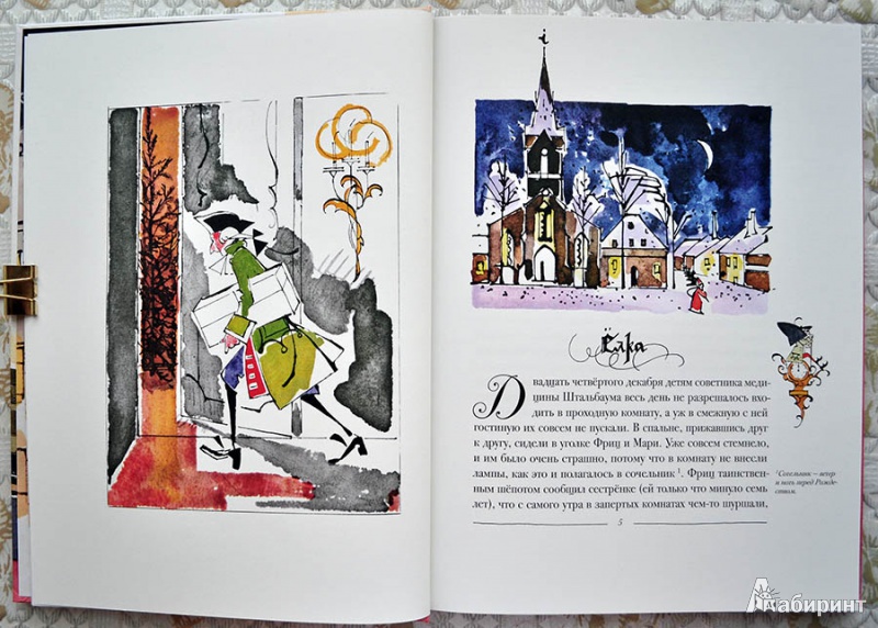 Поэтому и книгу эту я взяла вчера в руки осторожно. Она оказалась достаточно большой и приятно тяжеленькой (831 грамм "чистого искусства"- почти килограмм!). Нет, правда, я видела Щелкунчика намного меньшего по объему, и объяснение этому оказалось простое - в этой книге ПОЛНЫЙ ПЕРЕВОД Щелкунчика Ирины Сергеевны Татариновой.