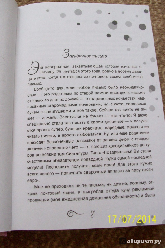 Подарила эту книгу дочери на 9 лет.По словам дочери книга "супер".Прочитала с большим интересом за несколько вечеров,закрыв последнюю страницу начала опять ее читать.......Качество печати отличное,шрифт не мелкий,хотя нет рисунков, но это ничуть не расстроило, книгу приятно держать в руках