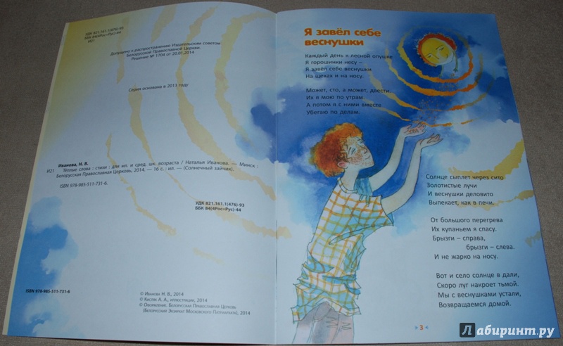 Ещё одного чудесного поэта подарила нам серия «Солнечный зайчик». Наталья Владимировна Иванова - большая выдумщица, её чудесные истории заставляют маленького читателя улыбаться («Мама мыла ламу», «Папина шея», «Как мышка звёзды ловила»). Её стихи наполнены добротой и светом, нежностью и вниманием к самым родным людям («Бабушка-волнушка» и «Тёплые слова»), они учат чуткости и состраданию к детям, лишённым чего-то важного в жизни, к братьям нашим меньшим («Мечтатель», «Придут в воскресенье за мной!» и «Щенок и дождь»), помогают ребёнку увидеть красоту и многообразие окружающего мира («Золотые кладовые» и «Я завёл себе веснушки»).