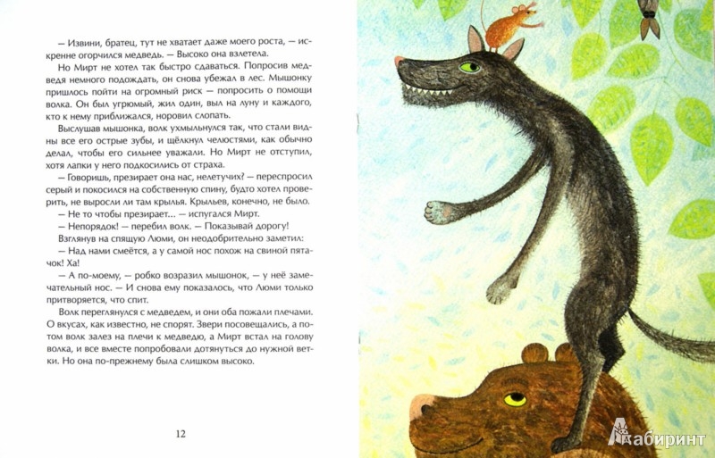 Какие милые мыши! И полевой мышонок Мирт и летучая мышка Люми такие симпатичные! Книжка о том, что дружба творит чудеса и позволяет достичь любых вершин. И что мечты сбываются, если проявить упорство в их достижении. Не только красивая, но и весьма умная книжка.