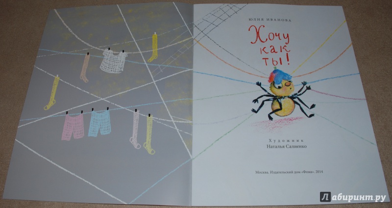 Крупные, лёгкие, красочные иллюстрации Натальи Салиенко добавляют книге летнего настроения. Оказывается, пауки тоже бывают обаятельными и совершенно нестрашными. :-)