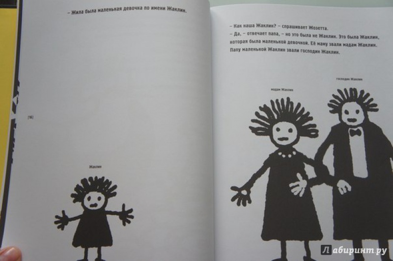 Лично мне было немного занудно читать девочка Жаклин, мама Жаклин, папа Жаклин, братья, сестры и много еще других персонажей, и все Жаклин. По тексту встречаются многочисленные перечисления, которые лично меня утомляли. Но ребёнок и бровью не повёл.