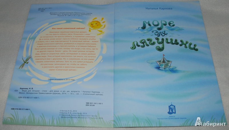 Спасибо большое автору и издателям за "Море для лягушат"! Читала своей 5-летней дочке и наслаждалась сама! Стихотворения Натальи Карповой помогают увидеть необычное в самых обычных вещах, помогают насладиться этим и не забыть. Заряжайтесь позитивом и наслаждайтесь!