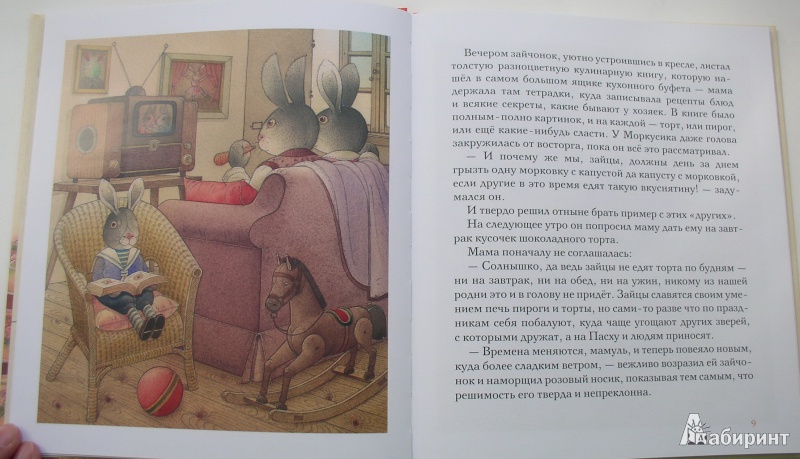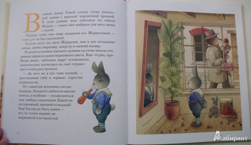 Забавная сказка про маленького зайчонка Моркуса, который очень расстраивался оттого, что был слабым и мелким. Моркус завидовал своему огромному и сильному соседу медведю и мечтал стать таким, как он. Однажды в ящике кухонного буфета зайчонок нашёл мамину кулинарную книгу, в которой было огромное количество рецептов вкуснейших пирогов и тортов с такими притягательными картинками. Моркус твёрдо решил отныне отказаться от морковки и капусты, которой его ежедневно пичкали на завтрак, обед и ужин, и переключился на поедание всевозможных сластей.