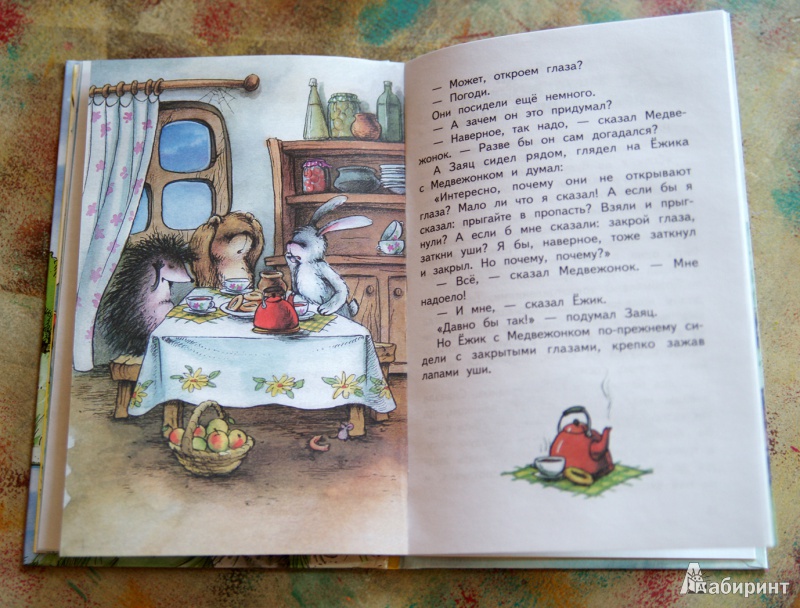 У нас две книги Козлова про ёжика и медвежонка. Первая- с иллюстрациями, как в мультфильме "трям, Здравствуйте". Эту же я купила из-за рассказов, которых там нет. Меня, взрослого человека ,поразили "кто-то" и "а может,откроем глаза?".Считаю эту книгу must have в детской библиотеке .