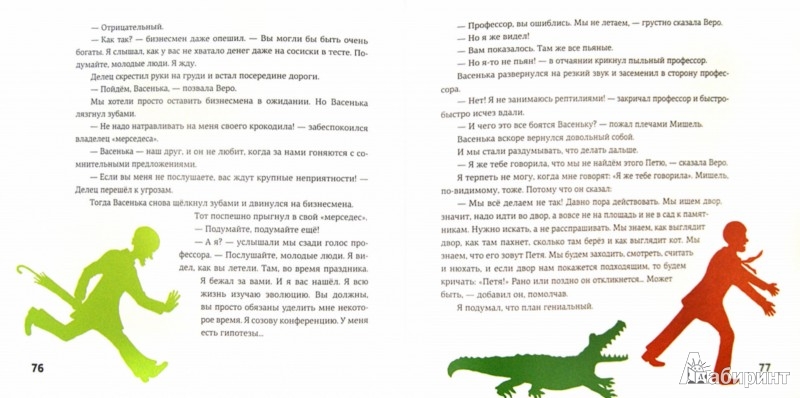 Удивительная книга. Бывает все, даже крокодилы в Москве-реке, без которых я могла бы и обойтись. Что прекрасно: дети как дети, устают, создают неразбериху, добры и одарены. Хотя голодны, выпускают на волю горячих собак (сосиски из теста). Дарят регулировщику персональную песню. Спасая от смерти бабушку, которая вдруг затеяла умирать от любви, задали себе непосильную задачу - найти определенный единственный двор, с тремя березами, дворником, котом, который урчит как трактор, и бабушкиным любимым человеком Петькой. Умеют разговаривать с водителем троллейбуса, бродячими собаками, скучающими памятниками, выжившими из ума старушками, упомянутыми крокодилами. И ведь сумели, и все получилось! Даже телефонный разговор удался, номер оказалось знать необязательно. На прощанье пожалели, что в Кремле, наряду с царь-колоколом и царь-пушкой, нет царя-кота. Шапка Мономаха ему бы пришлась к морде. Жаль, что им пришла пора улетать. Что прекрасная книжка кончилась.