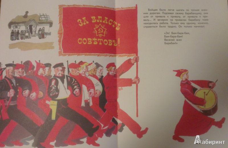 Книга очень красивая , советское мы любим ,нам она подходит. Каждую страницу можно долго рассматривать - все по-разному нарисованы. Монументальные , благородные , суровые фигуры- настоящие герои. подходя к концу книги, дочь 6ти лет заткнула уши , спросила- убьют его или нет, когда узнала, что убьют, то сообщила мне , что на ночь ей такое читать нельзя. Днём дочитаем . Сюжет предельно простой . Помню, в детстве этот рассказ намного больше эмоций вызвал , чем сейчас