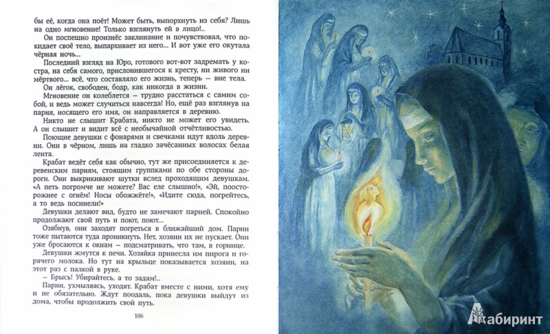 P.S. Соглашусь тем, что эта история привлекательна как раз своим мистическим, "страшным" началом. В к.80-х - самом начале 1990- х в рамках какого-то международного мультфестиваля по телевидению был показан мультфильм Карела Земана (тогда же, кстати, показывали и чешскую "Маленькую Бабу-Ягу" режиссера Зденека Сметаны, многие, думаю, это помнят), этот мультфильм запомнился как первый увиденный именно страшный мультфильм :) И хотелось, чтобы его снова показали. Эту книгу издают нечасто, и все-таки я настаиваю на том, что эта повесть рассчитана на школьный возраст, близкий к старшему. Я будучи взрослым человеком перечитывала - было местами жутковато... В основе истории - сорбское предание о мальчике-сироте, победившем колдуна-мельника, который обеспечивал себе бессмертие ценой жизни своих учеников. Фон - измученная Тридцатилетней войной Германия 17 века, голод, обездоленные дети, болезни, разруха и т.д. Ученики мельника - психологичны, реальны, убедительны, и сама история кажется вполне достоверной.