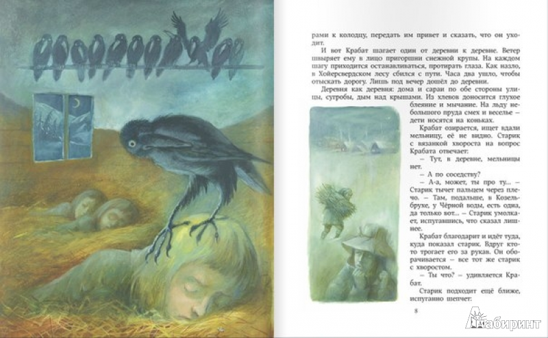 Не согласна!!! Это - любимейшая книга моего детства!!! Конечно, я её читала не в 5, и не в 7 лет. Где-то лет в 10-11. Но читала несколько раз, брала в читальном зале. Как же я мечтала о такой книге у себя дома!!! До сих пор хочу то переиздание с рисунками Льва Токмакова. Кстати, может быть они делали историю не такой мрачной - очень уж они стилизованные, детские, лёгкие. В этом издании, по моему мнению иллюстрации более соответствуют тексту по настроению. Тяжелые, немного похожи на мрачный сон. Вроде неплохо. А то последние издания "Крабата" вообще никакие. Так-что - куплю. Иллюстрации нашла в инете.