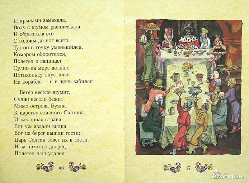 В книгу входит отрывок из поэмы "Руслан и Людмила", "Сказка о рыбаке и рыбке" и "Сказка о царе Салтане, о сыне его Гвидоне Салтановиче и о прекрасной царевне Лебеди". Книга небольшого формата, офсетные страницы. Нам с сыном понравились иллюстрации Анатолия Елисеева.