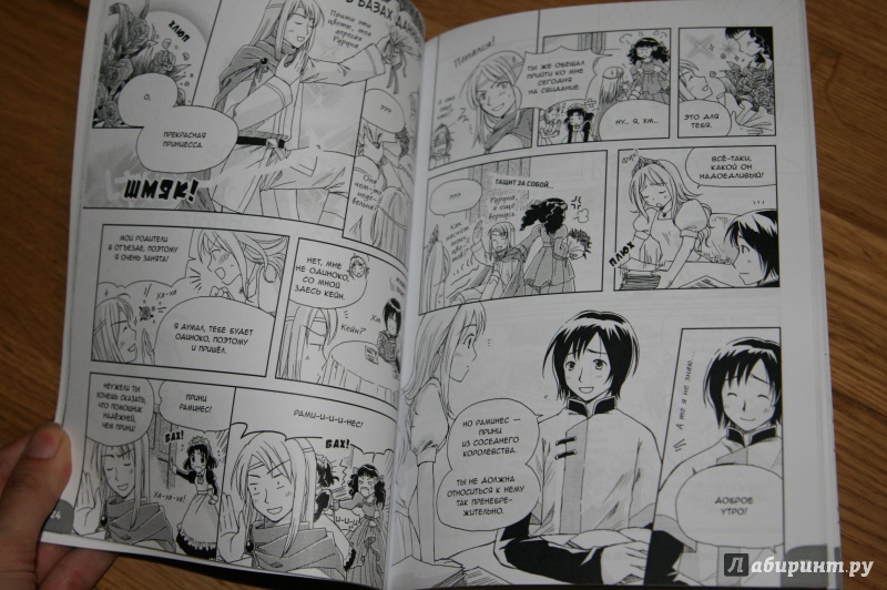 Очень смешная манга про принцессу сказочной страны, её относительно бестолкового жениха и умных помощников. Картинок много, текст не "грузит".