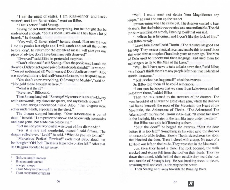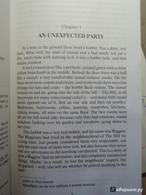 Будьте внимательны! В книге не родной текст Толкина, а адаптированный вариант. Достаточно сравнить толкиновское "This hobbit was a very well-to-do hobbit, and his name was Baggins" и то, что в данном издании "This hobbit was a very rich hobbit, and his name was Baggins."