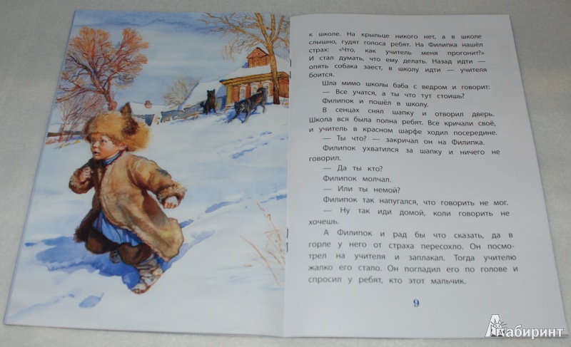 Второй рассказ "Филипок" - рассказ о крестьянском мальчике, который очень хотел учиться в школе и ничто не могло помешать его желанию ни собаки, набросившиеся на него, ни страх перед учителем. Рассказ учит детей стремиться и добиваться поставленной цели, несмотря на все преграды.