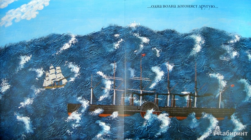 Вот буря, вот штиль... Вот безмятежная небесная голубизна яркого солнечного дня, вот загадка заката, вот чёрная пропасть шторма... Иллюстрации настолько поэтичны и выразительны, что каждую подолгу рассматриваешь, как художественное произведение.