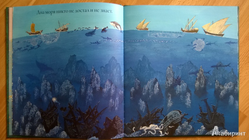 Красивая книга! Скорее даже не книга, а иллюстрированный альбом. Огромного размера, почти квадратной формы. Замечательного качества печать. Иллюстрации М. Бычкова рассказывают гораздо больше, чем текст. Да и текста как такового нет в книге, по предложению на страницу. Зато много Моря!) На каждом развороте оно разное, одушевленное, с разным настроением. Присутствуют и корабли, как же без них! Прекрасный подарочный вариант для маленьких и не особо маленьких восторженных почитателей морской тематики. "