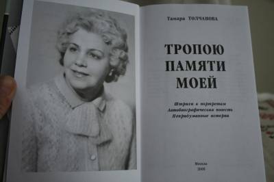 В Союзе писателей у Сергея Михалкова долгое время работала Тамара Петровна Толчанова - директором по выставкам, вечерам, концертам. Сейчас она на пенсии. Когда работала - не имела времени А вот теперь выпускает уже 4-ю книгу. А годков ей уже 90!!! Авторсие экземпляры ее третьей книги, где даются неизвестные штрихи к известным портретам знаменитых людей (и о Валентине Распутине тоже, и о Викторе Астафьеве, Владимире Солоухине и многих других - см. оглавление) хранятся у нее дома в количестве 300 штук. Она сама не может их разносить по магазинам и т.п. Тамара Петровна предлагает в дар библиотекам, школам ( для внеклассного чтения подростков), организациям, людям свои авторские экземпляры.