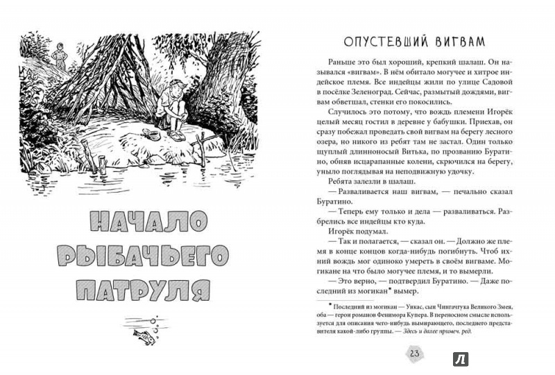 Вот так эта книга и оказалась на нашей полке. А пока сын до неё не дорос, я решила познакомиться с ней сама. И как же я была права, думая, что книга понравится мальчишкам! Всё в ней так, как любят мальчишки: здесь и приключения, и такие яркие персонажи. Герои-мальчишки и в индейцев играют, и клады ищут ,и браконьеров пытаются выследить. И все их приключения описаны так живо, забавно и с таким задором, что оторваться от книги просто невозможно.