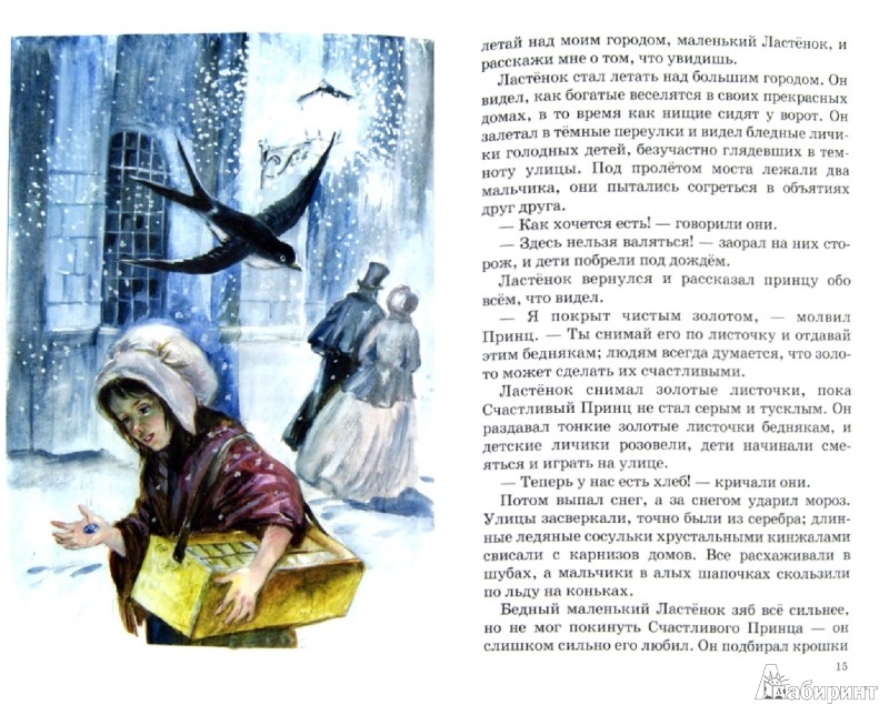 Хорошая плотная белая бумага,отличный шрифт для чтения ребёнку , неплохие иллюстрации. Даже очень неплохие. На каждую сказку по 2-3 картинки. Сказки без сокращений ,что очень хорошо. Жаль, что всего три сказки. Пусть бы книга была подороже но издали бы все сказки,их не так уж и много у Оскара Уайльда.